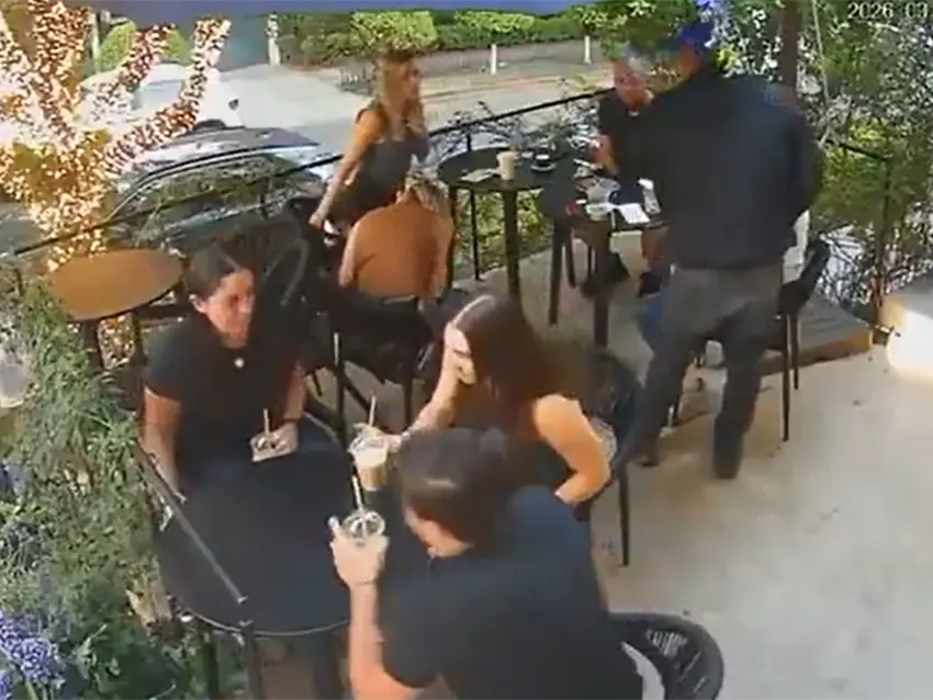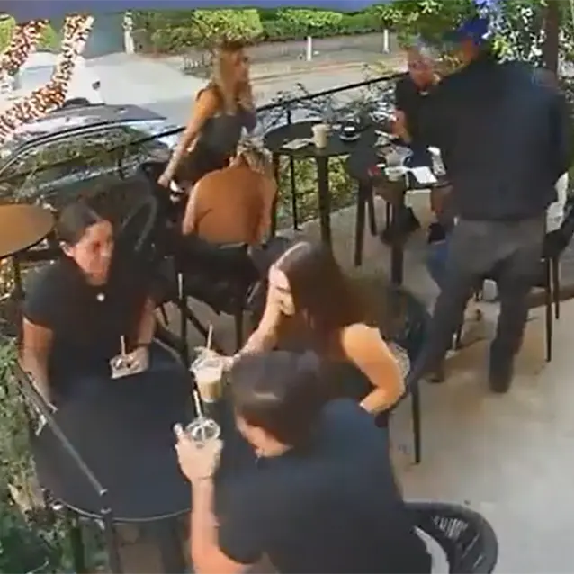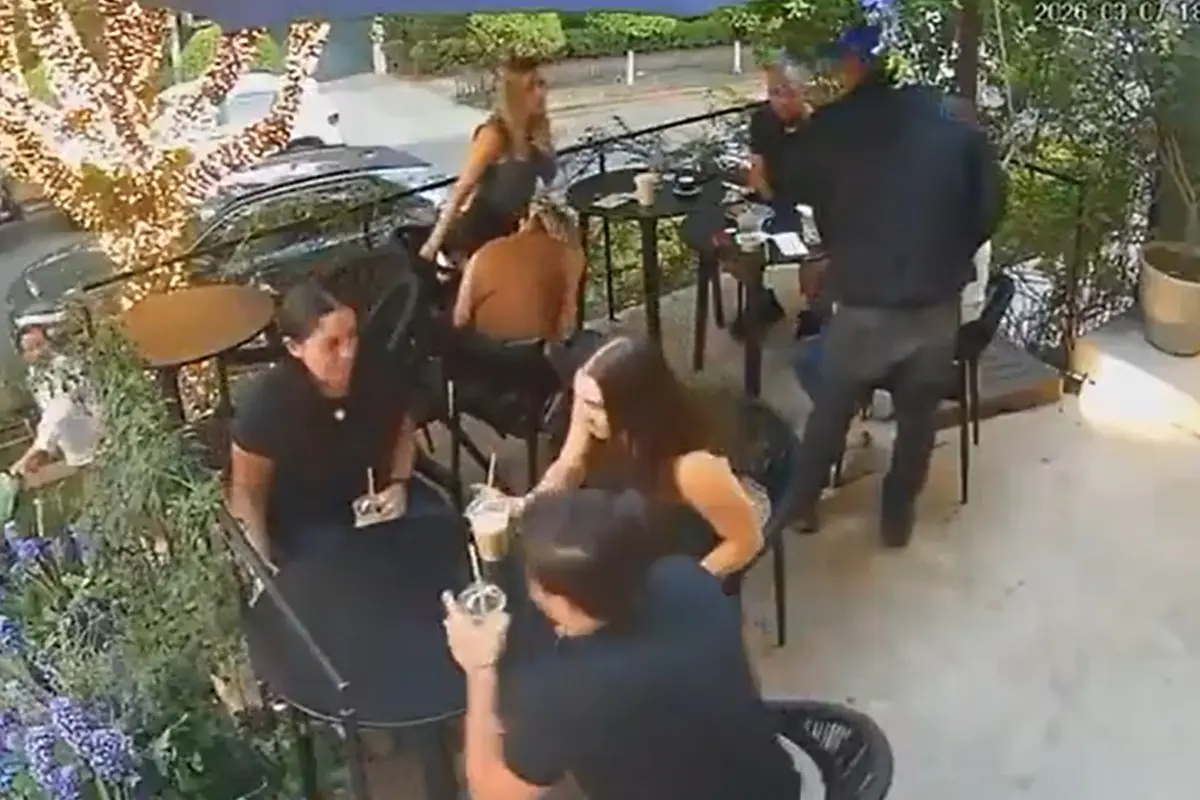 Las cámaras del establecimiento captaron la secuencia del robo ocurrido en la terraza del restaurante. En las imágenes se observa a un hombre que ingresa al lugar aparentando hablar por teléfono celular, una maniobra que aparentemente utilizó para no levantar sospechas entre los clientes.
